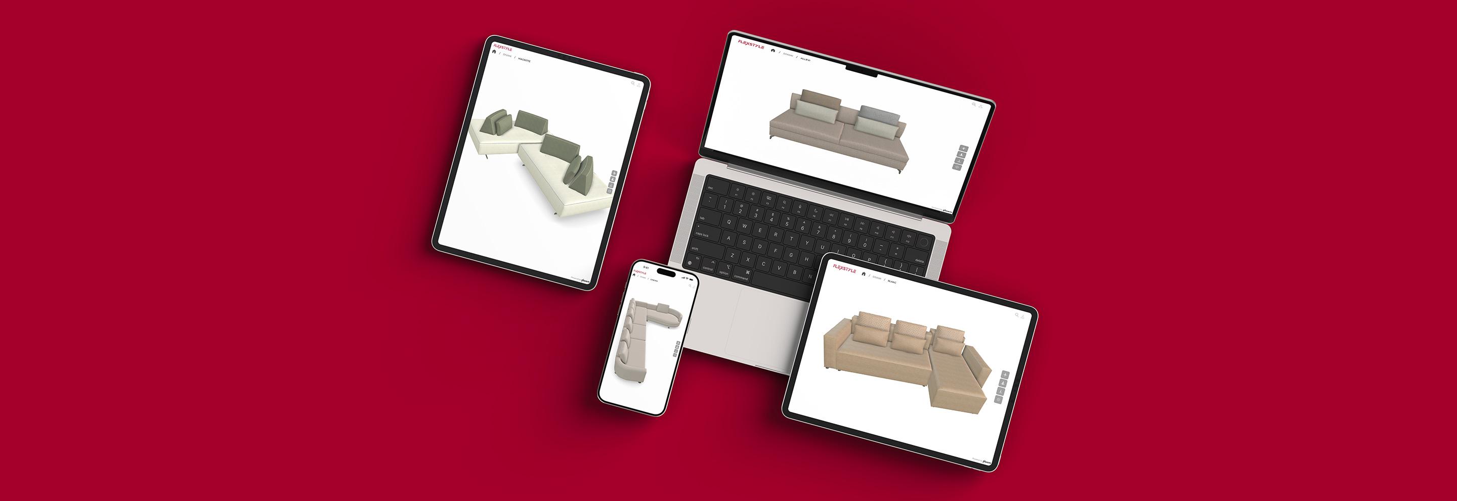 Lo sviluppo del configuratore 3D è stato il cuore del progetto. Ogni modulo può essere agganciato ad un altro grazie a un sistema a “calamita” che facilita la composizione dei divani. Gli elementi decorativi, come i cuscini, possono essere personalizzati dall’utente e posizionati sopra i vari moduli grazie a punti predefiniti. Un'altra caratteristica fondamentale è il calcolo automatico dello spazio occupato dalla composizione scelta, utile sia per il cliente che per i rivenditori in fase di progettazione. Il tutto è stato integrato con l’intero catalogo Flexstyle, rendendo disponibili tutte le varianti di prodotto e finiture direttamente nel configuratore.Il configuratore si distingue per una serie di funzionalità che rendono l’esperienza d’uso fluida e immersiva. L’interfaccia è completamente responsive, progettata per adattarsi a ogni dispositivo, che sia desktop, tablet o smartphone. Sicuramente una delle innovazioni più apprezzate dagli utilizzatori è la realtà aumentata, che consente all’utente di visualizzare il divano direttamente nel proprio ambiente domestico, tramite fotocamera.
